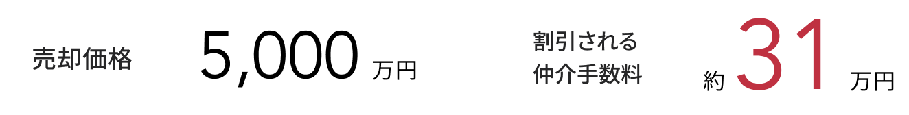 中間コストを抑えることで、お手元に残る金額をより多く売却することができます。 例えば、売却価格が5,000万円の物件の場合、仲介手数料だけで約31万円の差が生まれます。